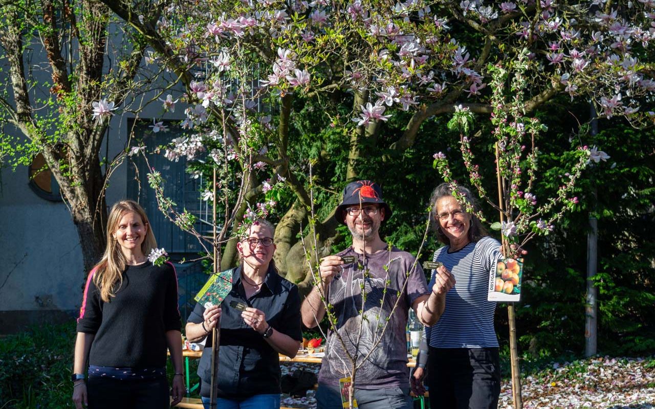Am 3. April fand die liebevolle Baumübergabe im Garten des Welthauses statt. Bei frühsommerlichen Temperaturen kamen wir mit den frisch gekürten Baumpat:innen zusammen, hörten ihre Geschichten und erfuhren, wo ihre Bäumchen künftig wurzeln und wachsen dürfen. Als Zeichen ihrer Patenschaft erhielten sie kleine Plaketten von der Initiative – und werden bald auch auf der digitalen Weltkarte ihrer Website tausendbaeumefuerarjun.de sichtbar sein.