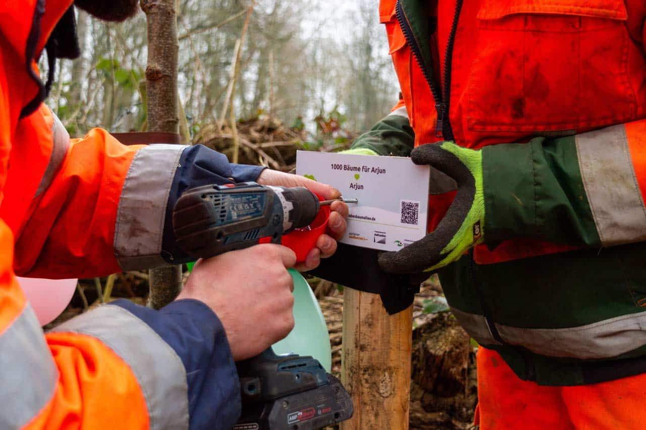 Die frisch gekürten Baumpat:innen erhielten ihre Urkunden, brachten gemeinsam mit dem Stadtbetrieb die Plaketten an und hatten mit Kind und Kegel viel Freude „ihre“ Bäume anzugießen und willkommen zu heißen. Manche Baumpat:innen – wie die 12. Klasse der Parzivalschule – hatten sogar kleine Geschenke für ihren Baum dabei.