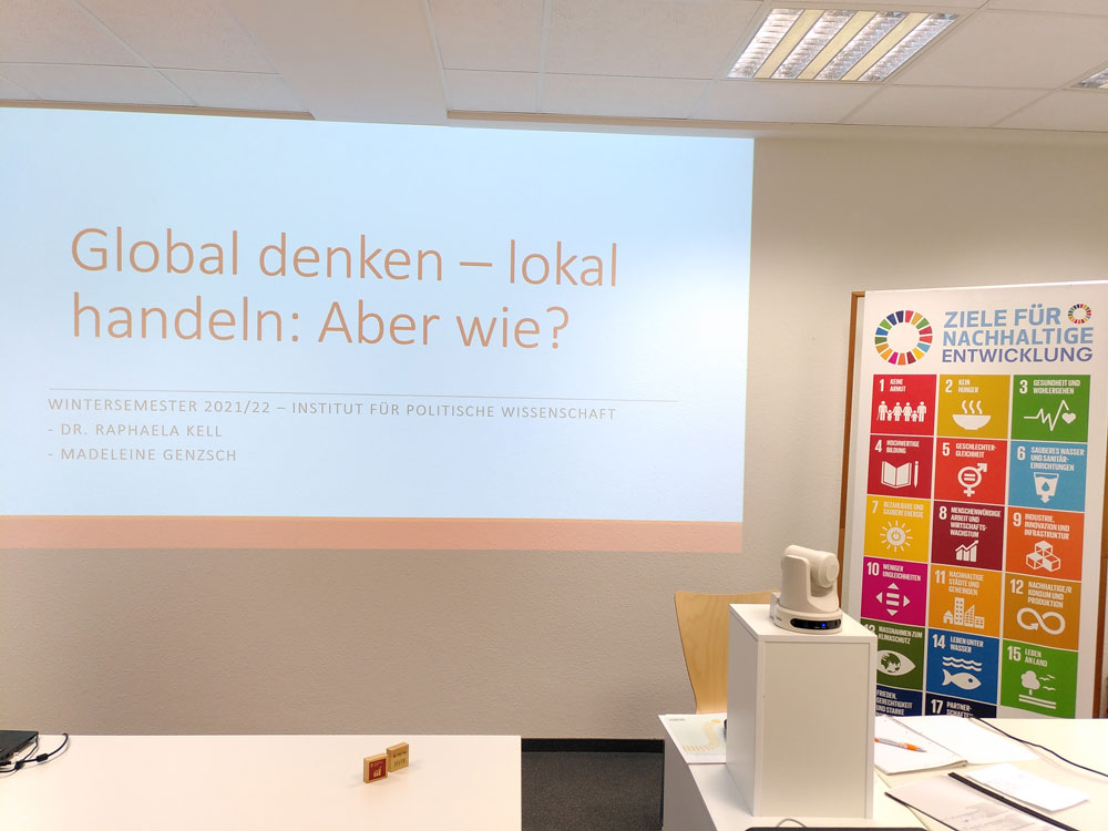Aufbauend auf den Erkenntnissen des Projekts We@Aachen und der beiden Studien, haben wir im Wintersemester 21/22, das 15teilige Seminar „Global Denken – lokal Handeln. Aber wie?“, am Institut für politische Wissenschaft an der RWTH Aachen, angeboten.