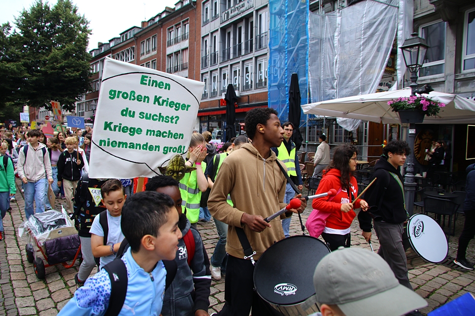 Dort versammelten sie sich, um ihre schulischen Anliegen an ein nachhaltiges und gerechteres Miteinander an Aachener Schulen auszusprechen.