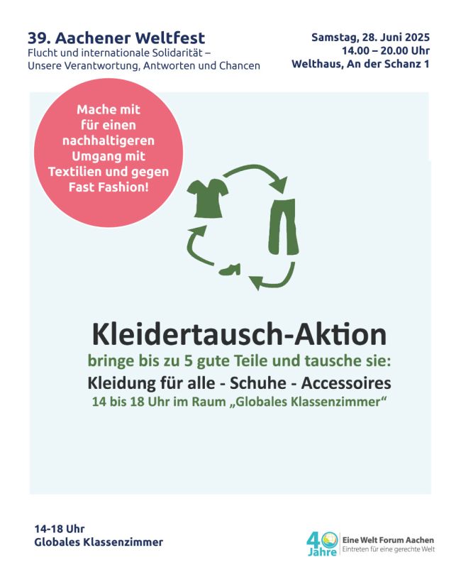 28. Juni, ab 14 Uhr im Welthaus Aachen–> Es wird Sommer und es fehlt noch ein luftiges Kleid oder ein passendes Oberteil, um gut in die warme Jahreszeit zu starten?