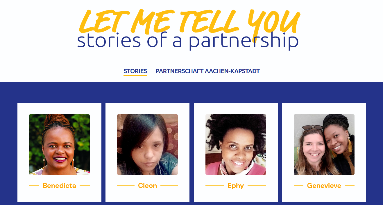 Das ist eine Webseite, auf der 20 Geschichten von 10 Menschen aus Aachen und 10 aus Kapstadt erzählt werden. Wir hatten im November Teilnehmende an Austauschen der letzten 20 Jahre, seit unsere Partnerschaft besteht, gefragt, uns zu diesem Jubiläum ihre ganz privaten, bewegenden, spannenden, für immer im Gedächtnis haftenden Geschichten zu erzählen.