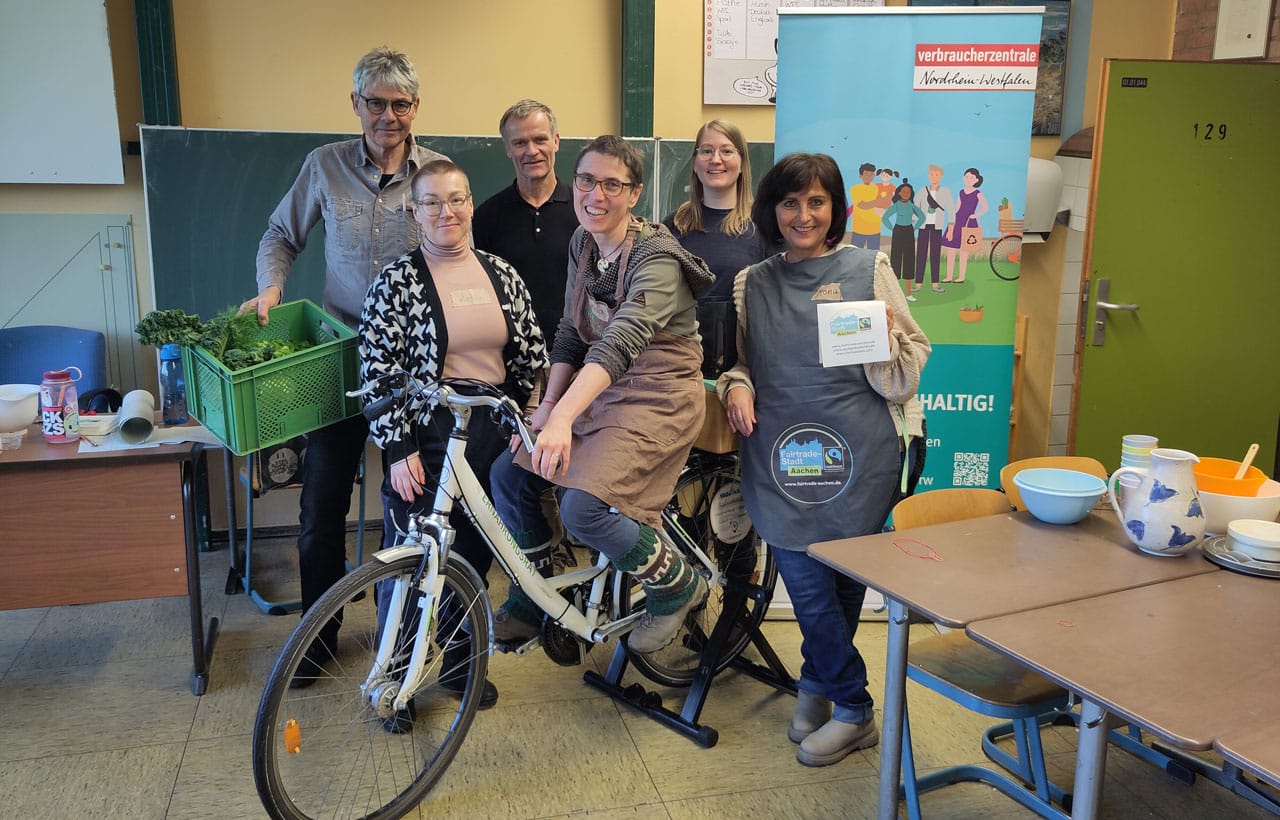 Am 03.02. hat die AG Bildung des Ernährungsrats Projekttage an der Heinrich-Heine-Gesamtschule mit einer Aktion zu „Food in action“ unterstützt. Mit von der Partie war die Verbraucherzentrale mit dem Projekt MehrWert-Revier und einem Workshop zu nachhaltiger Ernährung. Wir steuerten spannende Inputs zu Foodsharing, Fairtrade-Produkten von der Regionalpromotorin im Eine Welt Forum Aachen und dem Engagement des Ernährungsrats bei. Und dann ging die action richtig los: Frisch geradelte Smoothies aus gerettetem Obst, leckere Energiebällchen mit reichlich Fairtrade-Zutaten und jede Menge gute Ideen für eine gesunde und nachhaltige Ernährung! Eine runde Sache, die wir gerne auch in ähnlicher Weise an andere Aachener Schulen bringen möchten!