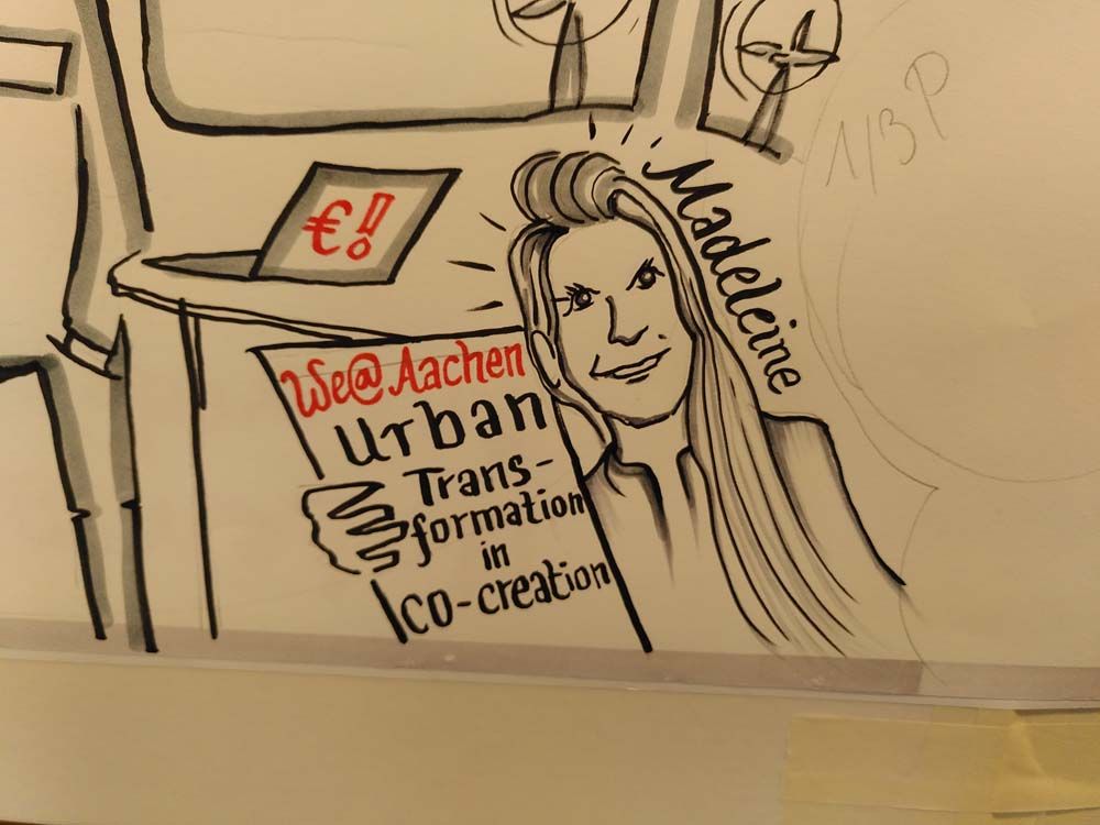 Madeleine war eingeladen um im Rahmen eines Impulsvortrages über We@Aachen, die Ergebnisse und Erkenntnisse beider Studien und ihre Erfahrungen urbaner, co-kreativer Transformation in Aachen zu berichten.