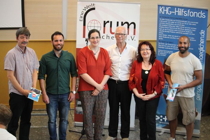Überall in Deutschland gibt es sie, die Zivilgesellschaft engagierter Bürgerinnen und Bürger, oft organisiert in Initiativen und Vereinen, die sich, zusammen mit Politik und Verwaltung, vor Ort dafür einsetzt, Menschen unterschiedlicher Herkunft und vielfältiger Kulturen das Privileg eines weltoffenen demokratischen solidarischen Raumes zu bieten. Aachen ist solch eine offene Stadt. Immer mehr sieht sich dieses Angebot der Humanität bedroht und eingeengt von dem Aufgebot an Diskriminierung durch Europa, das sich den Menschen aus bedrohten Weltregionen zu verschließen sucht. Somit ist die Herausforderung für alle entwicklungspolitisch Engagierten, Weltoffenheit und Gleichbehandlung aller Menschen gegen nationalistischen Egoismus und radikale Exklusion zu verteidigen, um die Gemeinsamkeiten in der Vielfalt der Menschen zu gewährleisten. Der Weg dazu eröffnet sich, indem die unterschiedlichen Welten in der Gemeinsamkeit der Einen Welt aufgehoben werden.